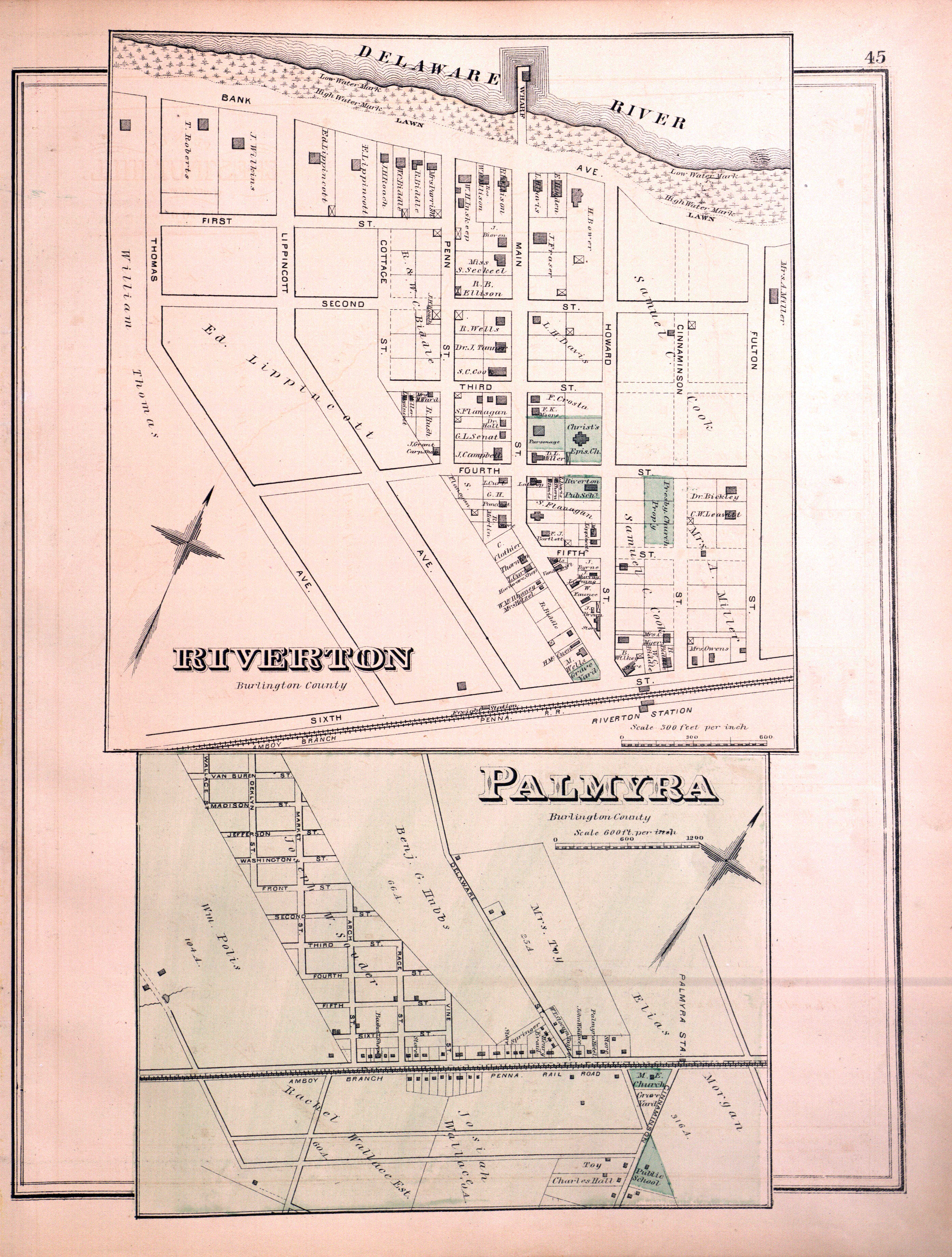 NJ maps from the Atlas of Philadelphia and environs: G. M. Hopkins 1877 - Riverside and Palmyra